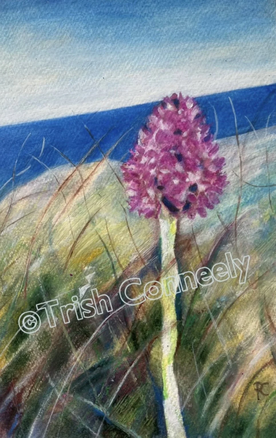 Trish Conneely, originally from Gort, Co. Galway, has lived on Inis Oírr for over 20 years. She currently teaches art at the island’s secondary school, Coláiste Ghobnait. She likes to experiment with many different materials including pencil, gouache, oil pastel, oil and acrylic paints.